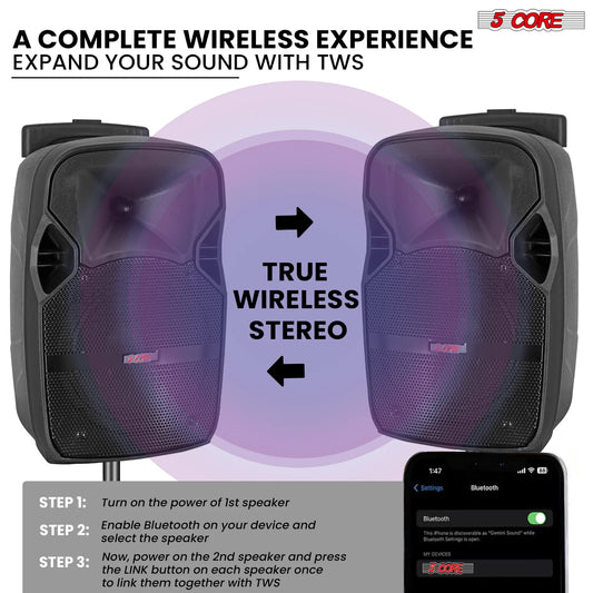 5Core 10 Inch PA Portable Bluetooth Party Speaker Karaoke Boombox + 2 Wireless Mics