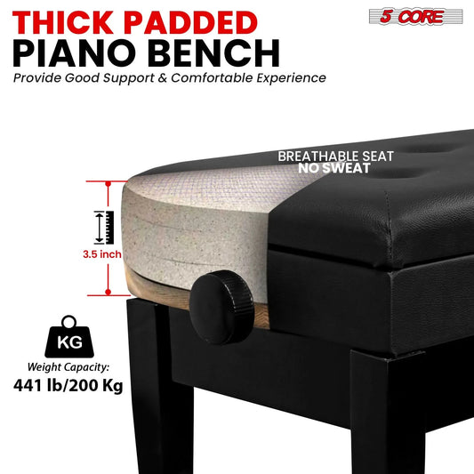 5CORE Duet Piano Bench W Storage for Two Wooden Adjustable Keyboard Stool - Adults & Kids