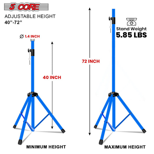 5Core Speaker Stand Tripod Tall Adjustable 72 Inch DJ Pole Mount Studio Monitor Stands SKY BLUE